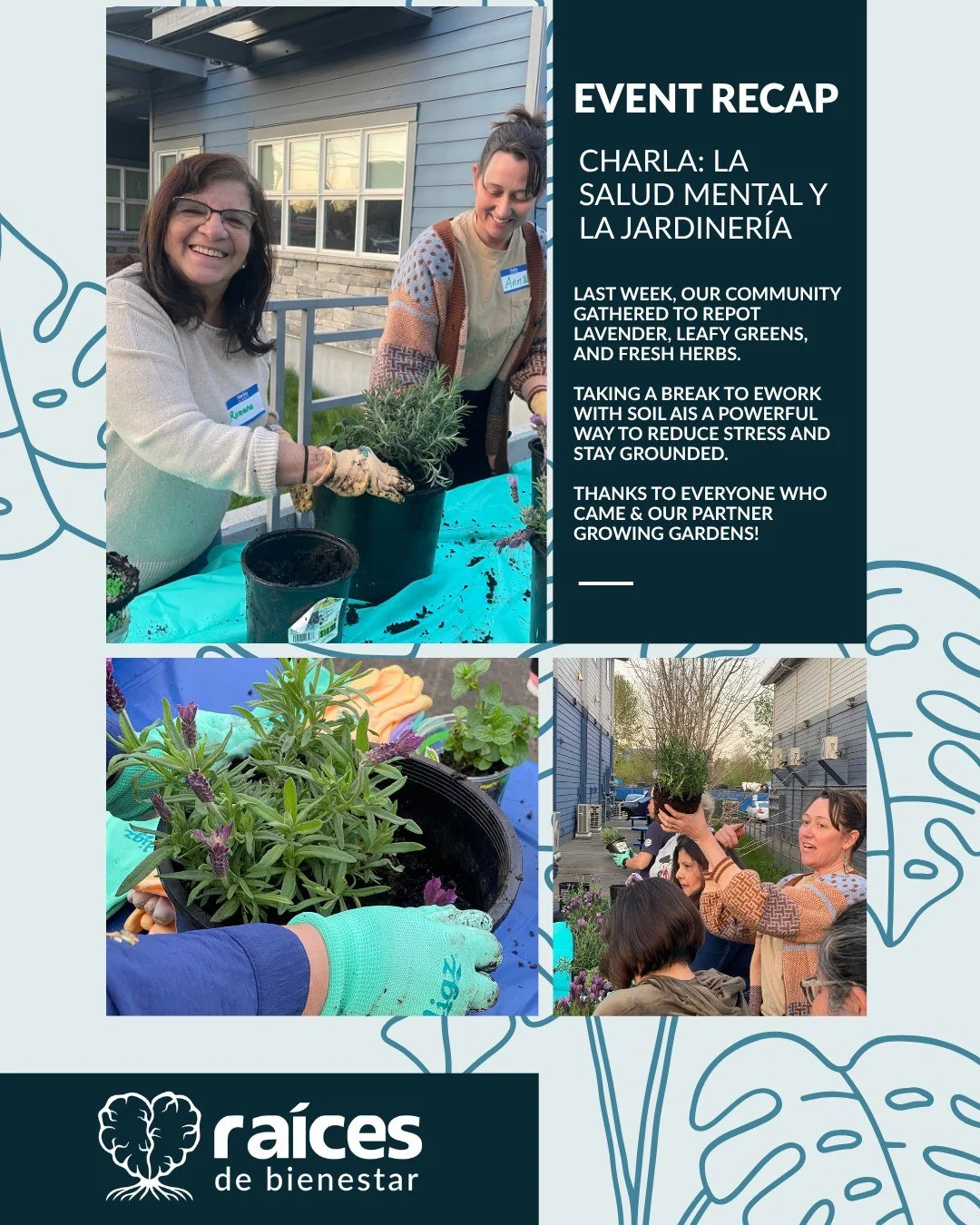 Raíces de Bienestar (Raíces) es una organización sin fines de lucro apasionada por mejorar la salud emocional y el bienestar de las comunidades latinas de Oregon y sus alrededores. Creemos que todo el mundo merece tener acceso a una atención de salud emocional de calidad, sin importar sus antecedentes o circunstancias. También reconocemos que la salud emocional se debe cultivar fuera de terapia. Raíces ofrece una serie de servicios que van desde la prevención hasta la intervención médica directa, para promover la salud emocional y el bienestar. Por eso trabajamos con líderes comunitarios y profesionales de la salud tradicionales para crear espacios seguros y agradables donde la gente pueda sanar y mejorar.